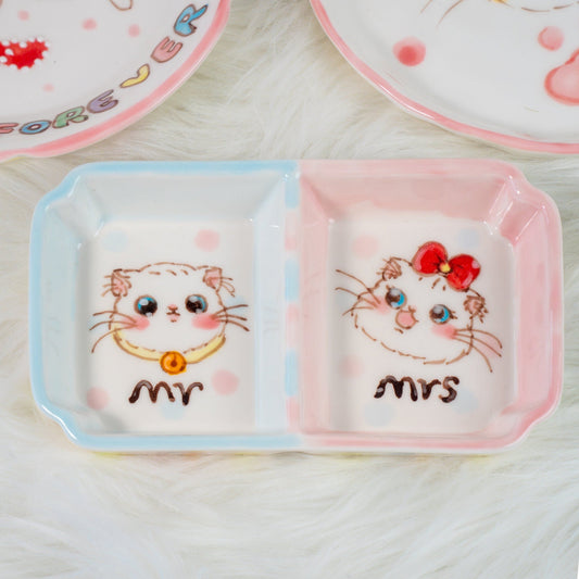 Mr and Mrs Ring Dish Engagement Cat Ring Dish, Wedding Ring Dish, Wifey Gift, Ceramic Cat Jewelry Dish, Bride and Groom, Jewelry Dish