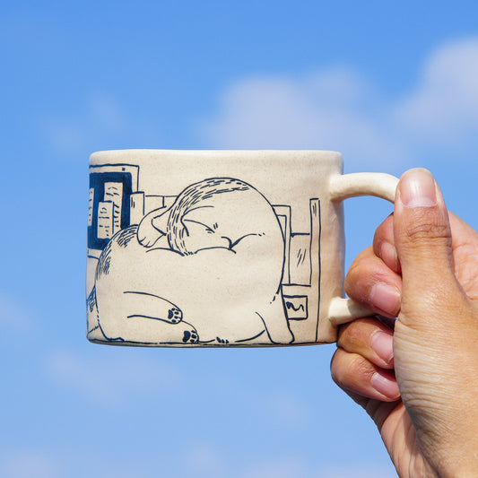Lazy Cat Ceramic Tumbler Handpainted Kitty Espresso Mug Sketch Art Style Funny Pet Tea Cup Comic Style Coffee Cup Cute Birthday Gift for Kid