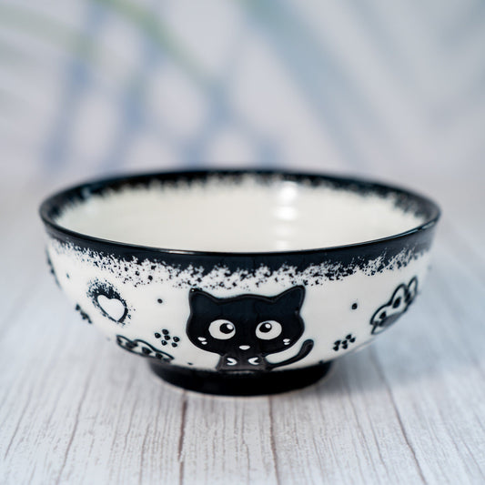 HandPainted Black Cat Ceramic Bowl, Ramen bowl Microwave Safe Pottery, Whimsical Breakfast and Snack Bowl, Perfect Gift for Cat Lovers