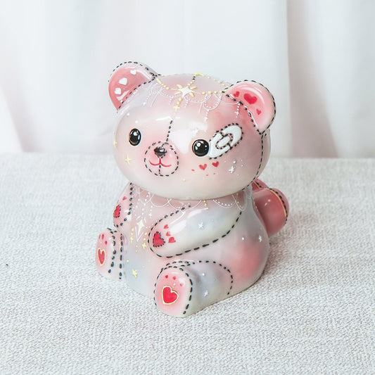 Pink Teddy Bear Ceramic Mug Handcrafted Novelty Cup With Lid, Storage Jar Kawaii Kitty Design For Sister Birthdays Gifts for Plush Lovers