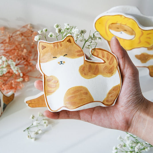 Two Styles Handmade Ceramic Orange Cat Planters for Plant Lovers and Feline Enthusiasts, Housewarming Present Gifts for Her Birthday Gifts